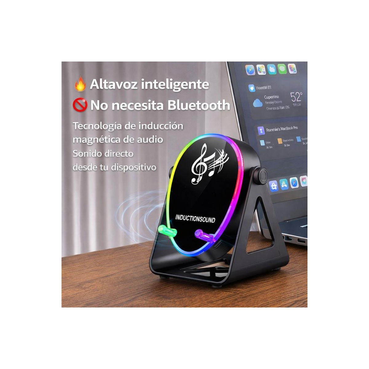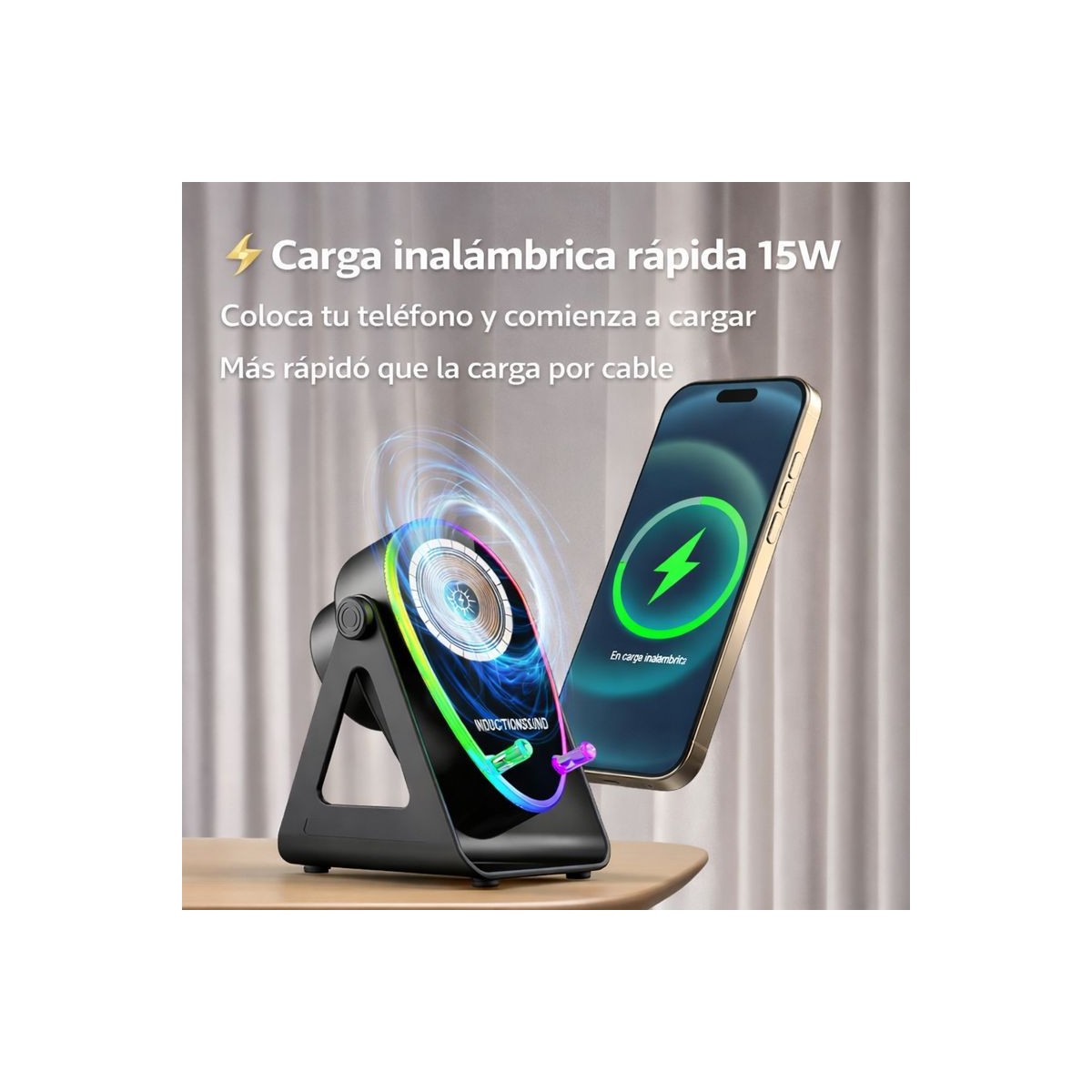 Altavoz Intelligente Induzione Magnetica | Suono 720° Ricarica Wireless 15W | Luci LED RGB