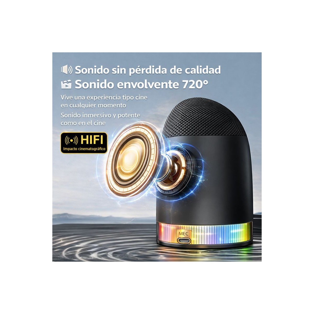 Altavoz Intelligente Induzione Magnetica | Suono 720° Ricarica Wireless 15W | Luci LED RGB - Pezzella Shop