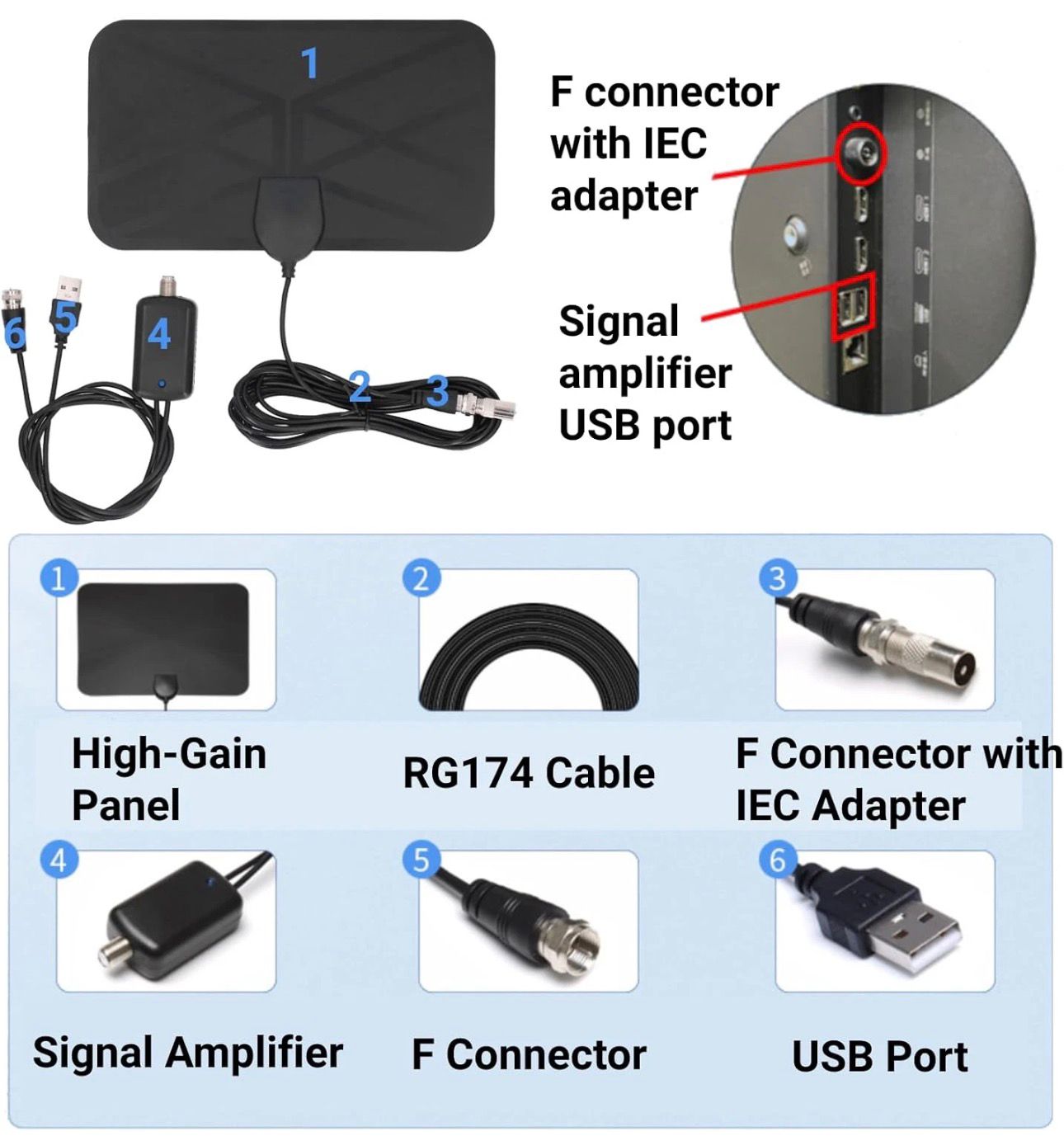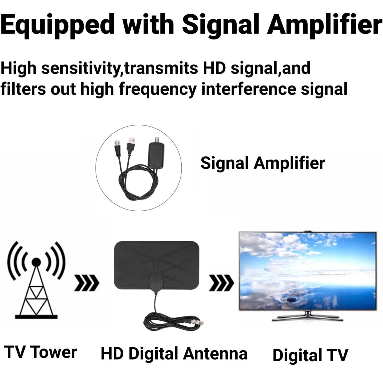 Antenna TV interna amplificata per DTT DVB-T/DVB-T2, perfetta per guardare la TV in 4K con segnale chiaro e stabile.