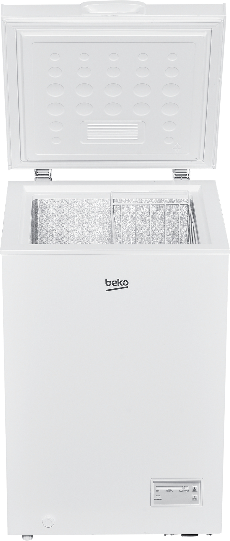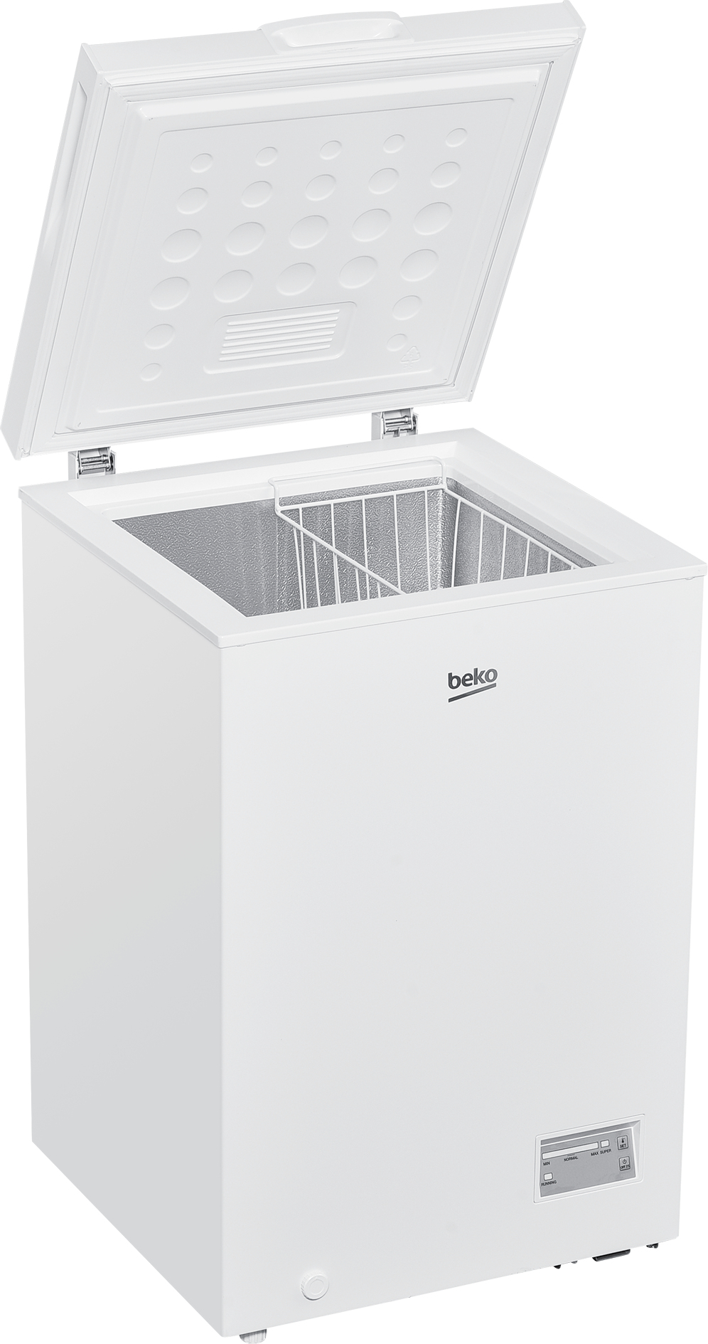 Beko CF100WN: Congelatore Orizzontale, Statico, 98 L, 54.5 cm. Capacità netta congelatore: 98 L, Classe climatica: SN-ST, Autonomia senza energia elettrica: 13,5 h, Emissione acustica: 40 dB, Punteggio: 4*. Cerniera porta: In alto. Classe efficienza energetica: F, Consumo energetico annuo: 211,09 kWh. Colore del prodotto: Bianco