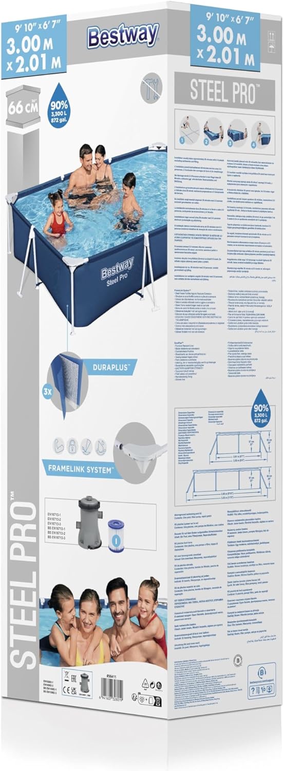 Set Piscina Fuori Terra Steel Pro Rettangolare 300x201x66 Cm – La Soluzione Ideale Per Il Tuo Giardino, Facile Da Montare, Capacità 3300 L, Materiale PVC Resistente