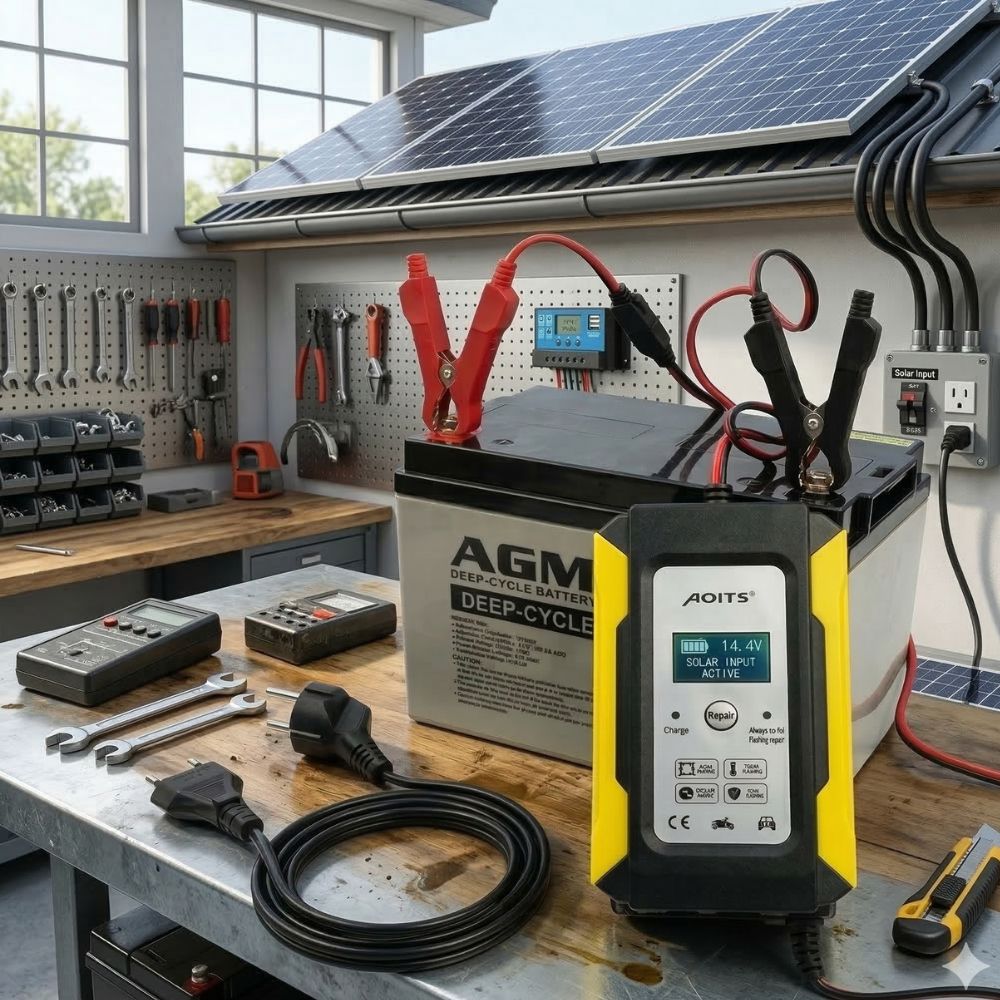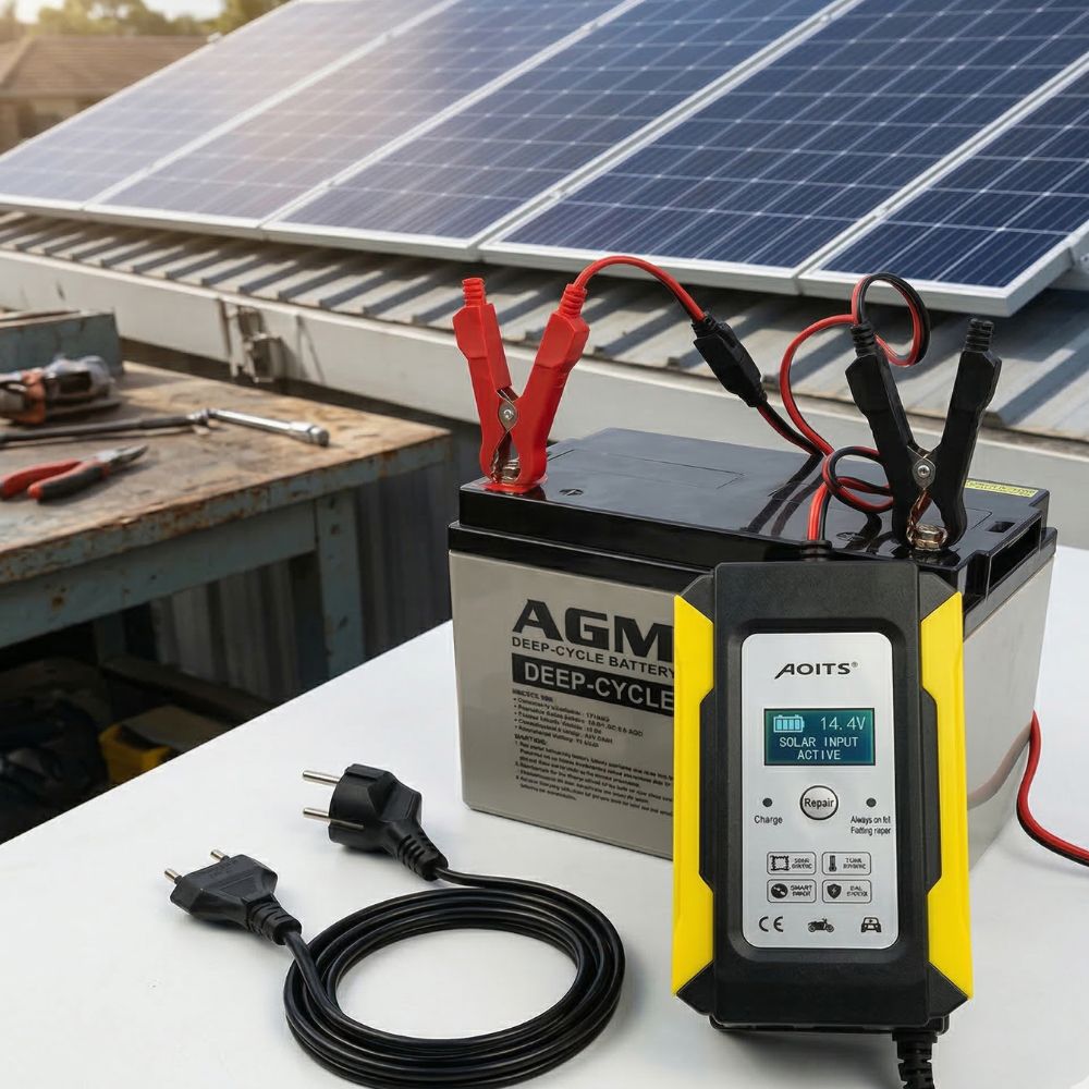 Caricabatterie intelligente per batterie al piombo da 12V, progettato per garantire ricarica sicura, veloce ed efficiente. Dotato di display digitale LCD, consente di monitorare in tempo reale tensione, corrente, temperatura e stato di carica della batteria.