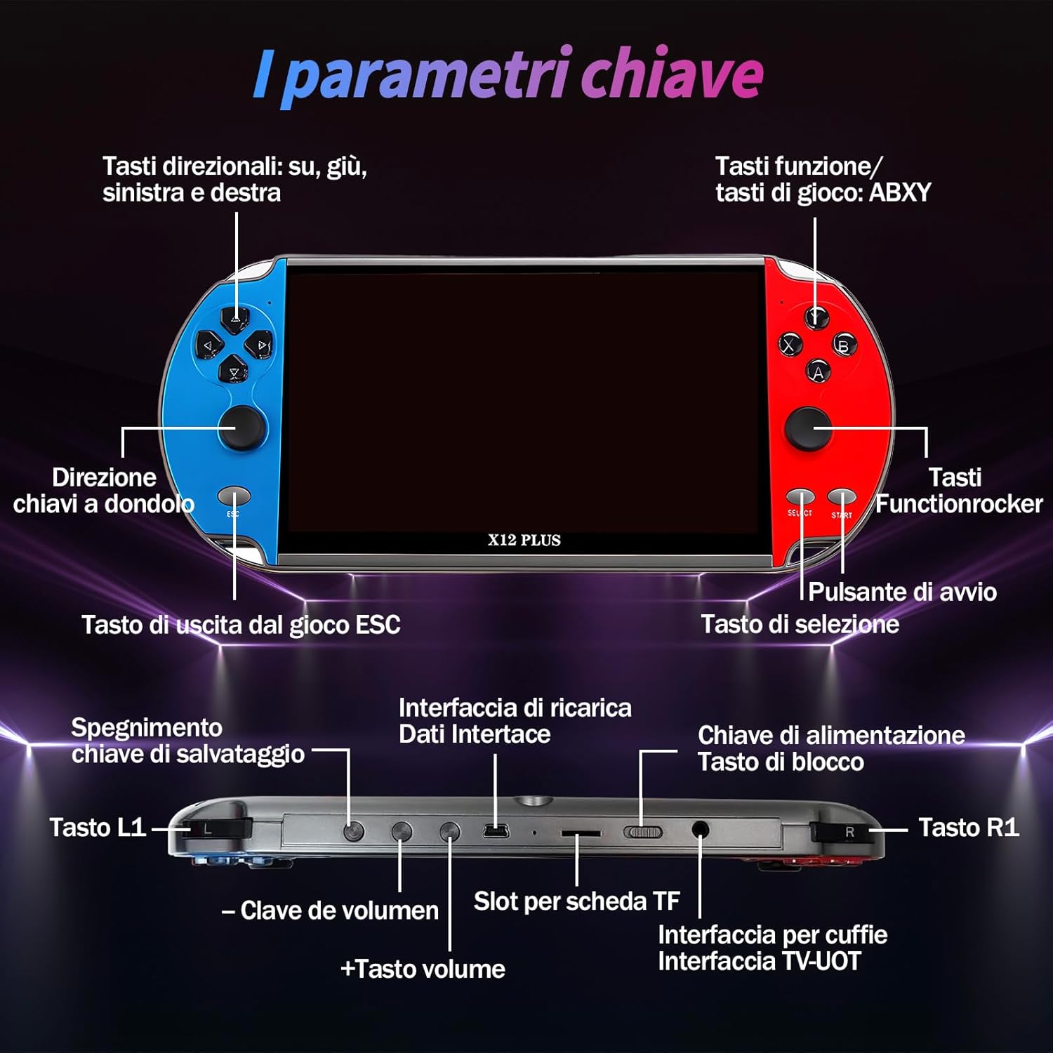 Lettore multimediale per formativi audio, video e testuali. Gioca, guarda i video, ascolta la musica, leggi gli e-book e altro ancora con la console portatile!