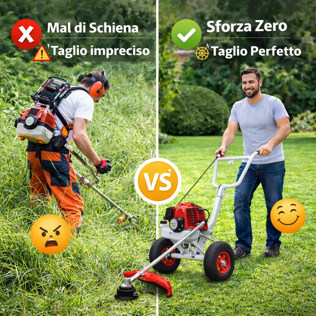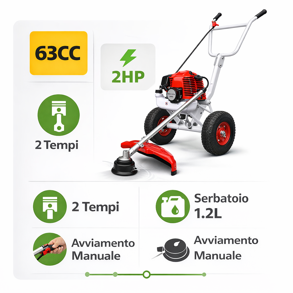 Il Decespugliatore a scoppio con ruote da 63 CC combina potenza e precisione per un lavoro senza fatica.