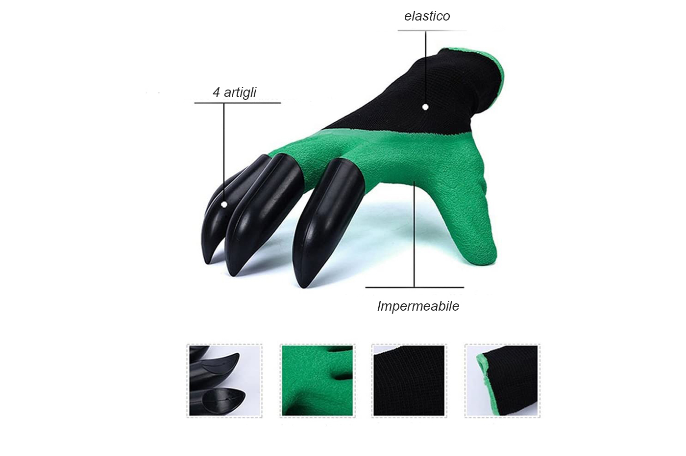 Guanti da giardino con artigli rigidi per scavare terra in modo efficiente. Ideali per lavori di giardinaggio, disponibili in taglia unica.