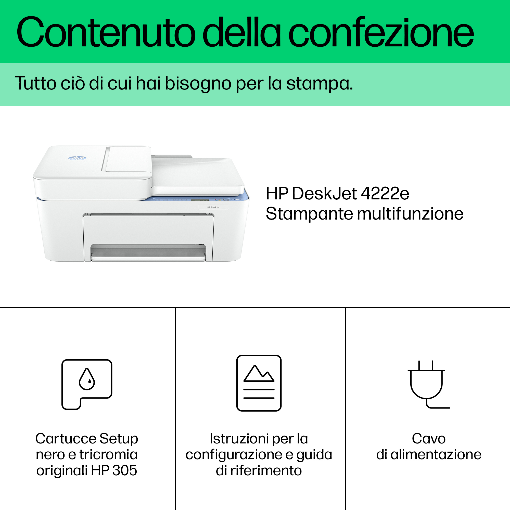 HP DeskJet 4222e Wireless All-in-One Colore Stampante, Instant Ink; Fotocopiatrice, scanner - Pezzella Shop