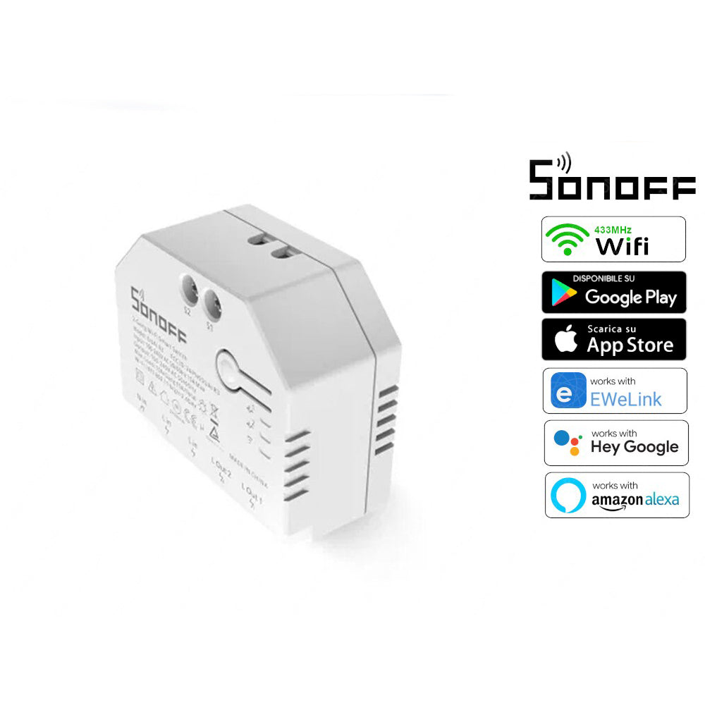 Interruttore smart SONOFF DualR3R: controllo wireless a due canali per luci, tapparelle e motori. Gestisci tutto via app Android/iOS, automazioni e monitoraggio consumi.