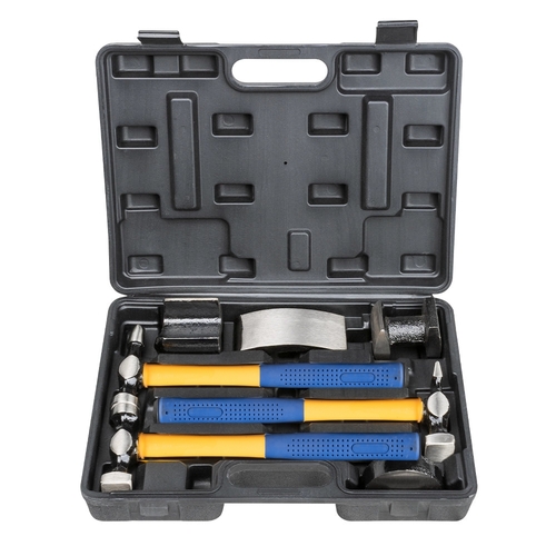 Kit professionale di 7 attrezzi per carrozzeria, ideale per riparazioni rapide e precise. Include martelli, tassi e valigetta resistente. Perfetto per meccanici auto.