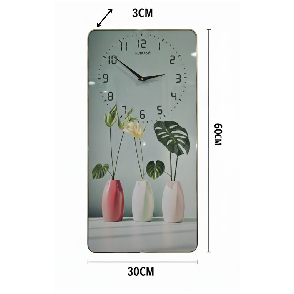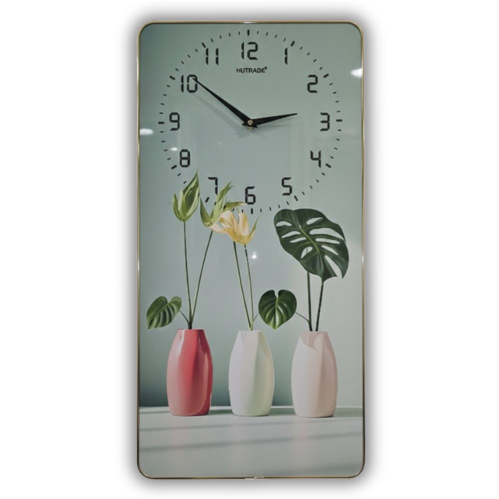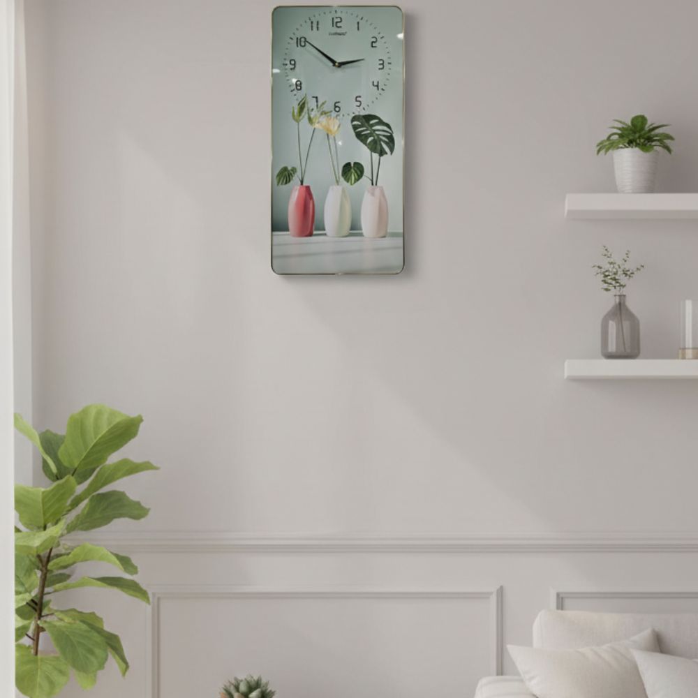 Orologio da parete decorativo con struttura rettangolare e design moderno ispirato a vasi con piante. Unisce funzionalità e stile, perfetto per arredare salotti, cucine, studi e ambienti interni con un tocco originale.
