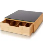Cassetto porta capsule elegante e funzionale, perfetto per organizzare capsule, cialde o bustine di tè. Realizzato in legno robusto e rifinito con stile, si adatta perfettamente a ogni cucina o angolo caffè.