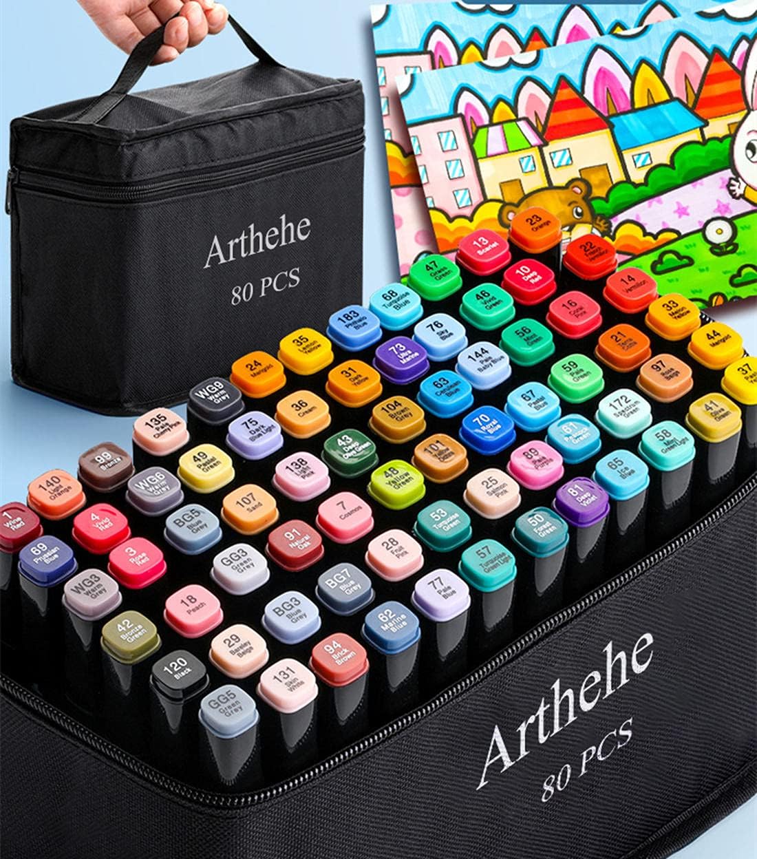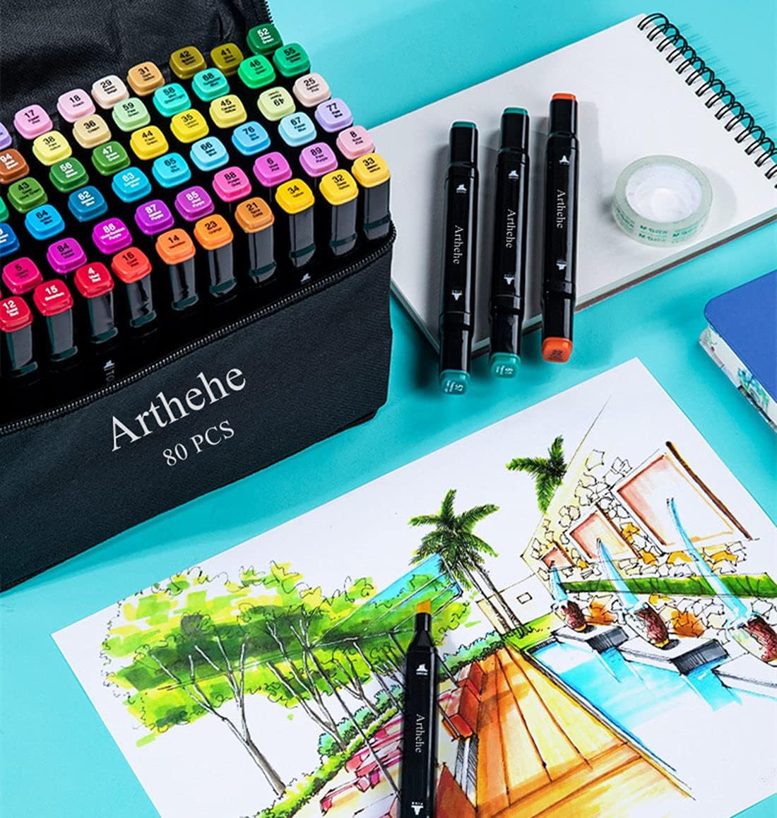 Scopri il set completo di pennarelli artistici a doppia punta, perfetti per disegni dettagliati, illustrazioni, calligrafia, manga, bullet journal e molto altro. Grazie agli 80 colori vibranti e facilmente sfumabili, questo kit è la scelta ideale per professionisti, studenti e appassionati di disegno.