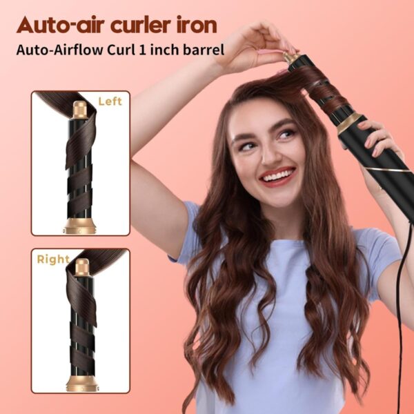 Set asciugacapelli 6 in 1 con spazzola ad aria calda e accessori per styling: asciuga, arriccia e cura i capelli in un unico dispositivo.