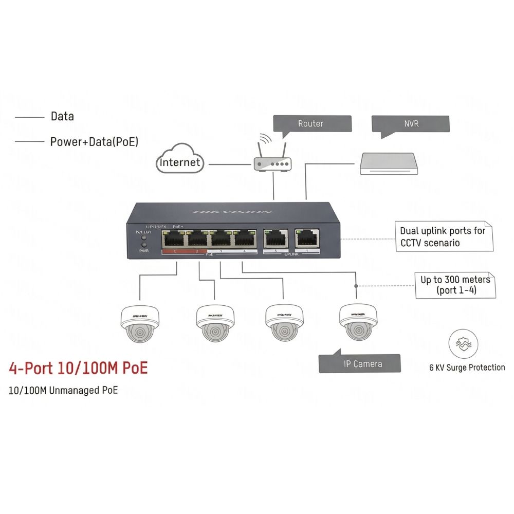 Switch PoE Hikvision 4 Porte 10/100 Mbps | Ethernet per Videosorveglianza