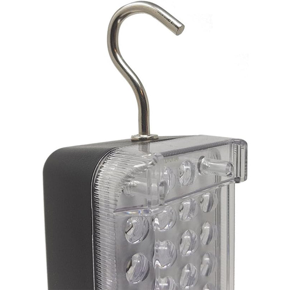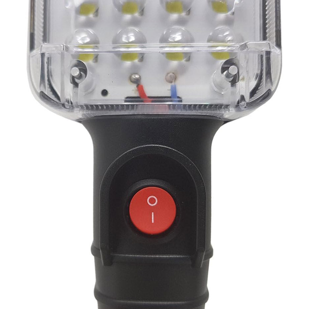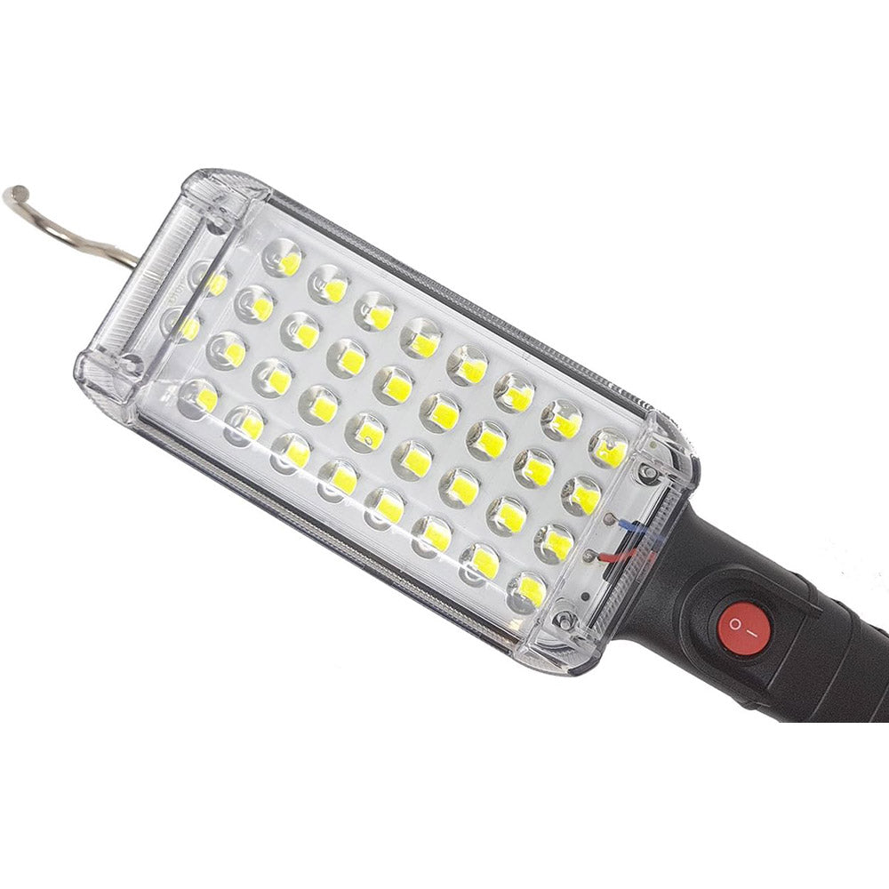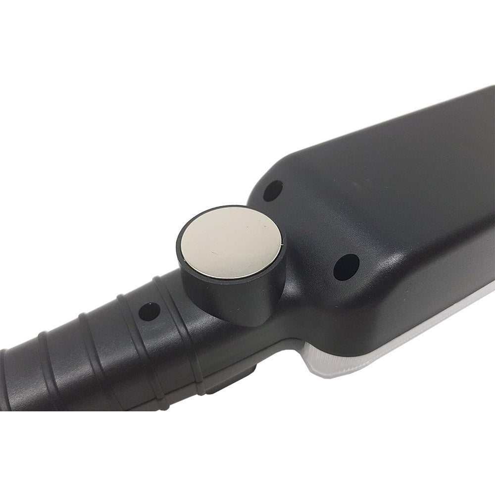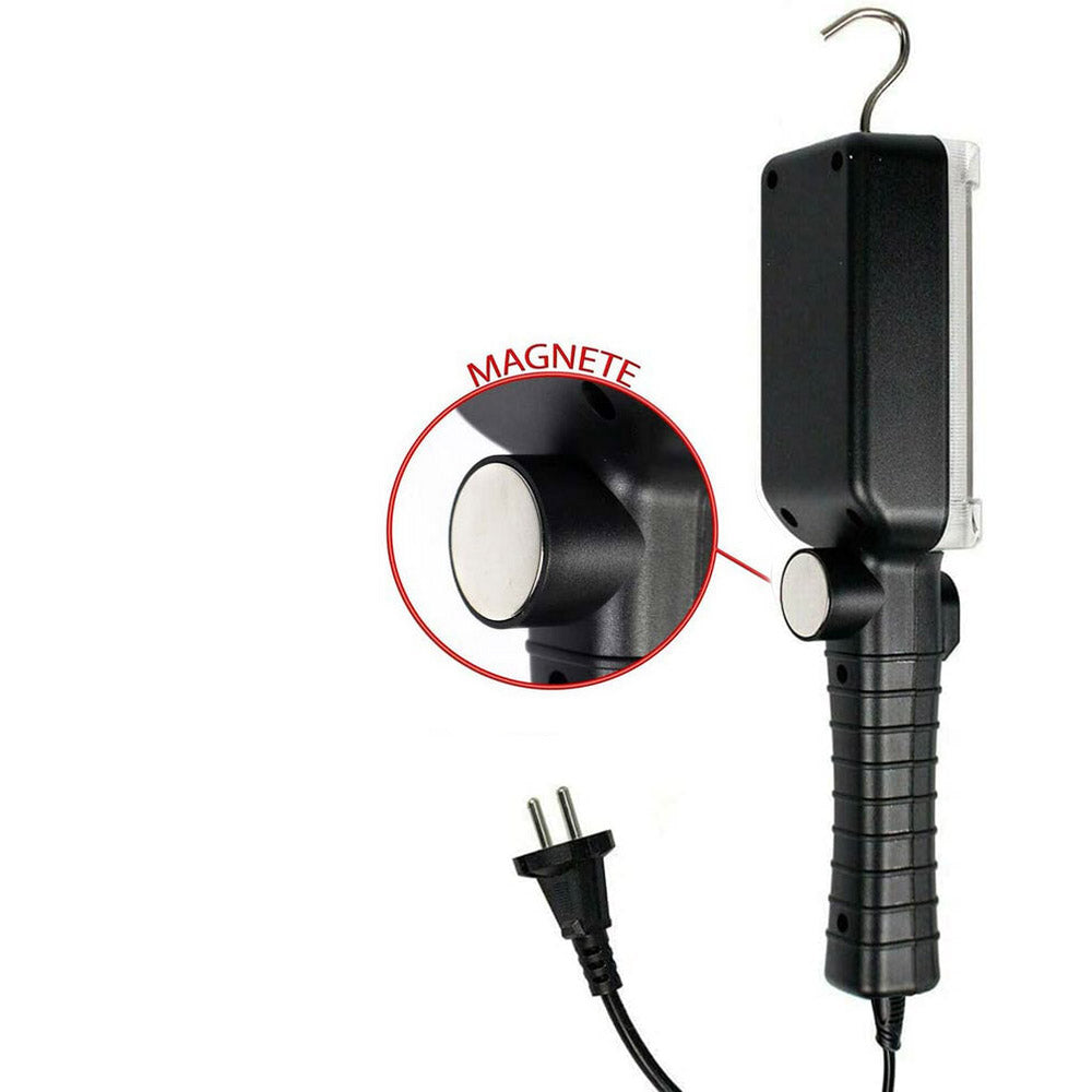 Potente torcia LED da 34W, perfetta per officine, cantieri e interventi di emergenza. Grazie al gancio e al magnete, si aggancia facilmente a superfici metalliche, liberando le mani.