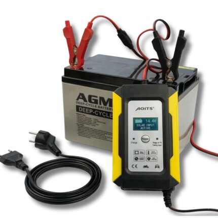 Caricabatterie 12V 10A per Batterie Gel e Litio | Display Digitale con Pinze
