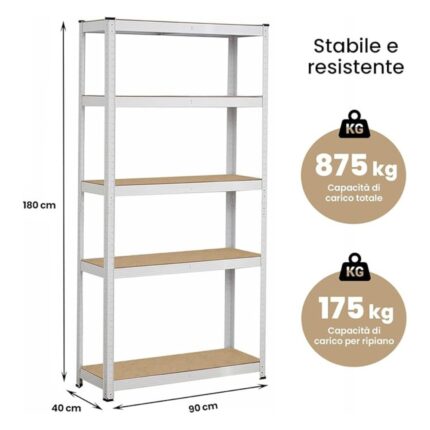 Scaffale 5 Ripiani x 175Kg per Carichi Pesanti | Scaffalatura in Metallo e Legno 180x90x40cm